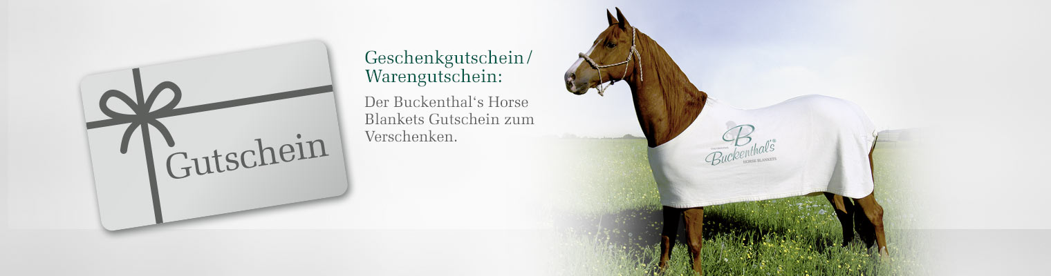 Mit Buckenthal’s Geschenkgutschein haben Sie immer das richtige Präsent ! Sei es zum Geburtstag, zu Weihnachten, zum neuen Pferd, zur Stalleinweihung oder zum Tag des Schutzpatrones Sankt Georg !